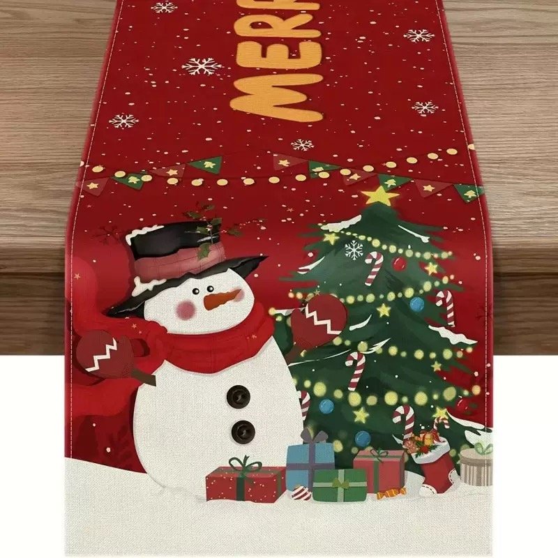 - Decoración de Feliz Navidad para el hogar con estampado de muñeco de nieve, árbol de Navidad,
