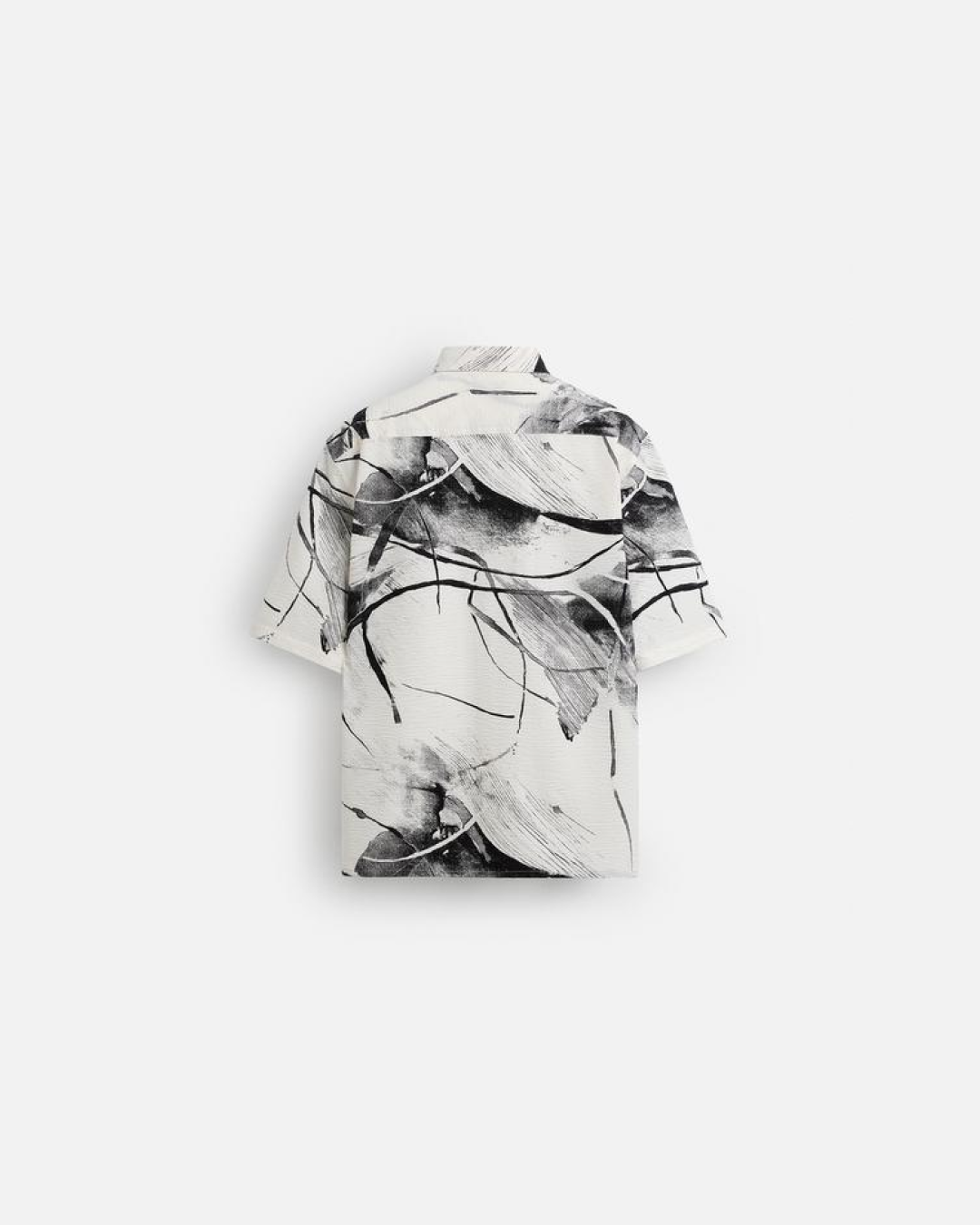 - Camisa de lino de corte holgado. Con cuello tipo campamento, mangas cortas, parches texturizados en contraste en la parte delantera, aberturas laterales en el bajo y cierre de botones en la parte frontal.