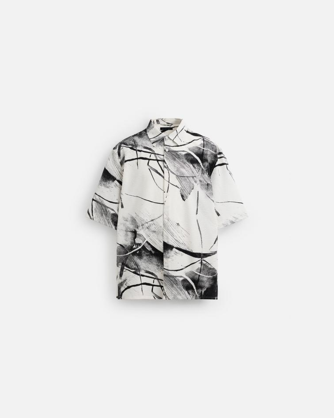 - Camisa de lino de corte holgado. Con cuello tipo campamento, mangas cortas, parches texturizados en contraste en la parte delantera, aberturas laterales en el bajo y cierre de botones en la parte frontal.