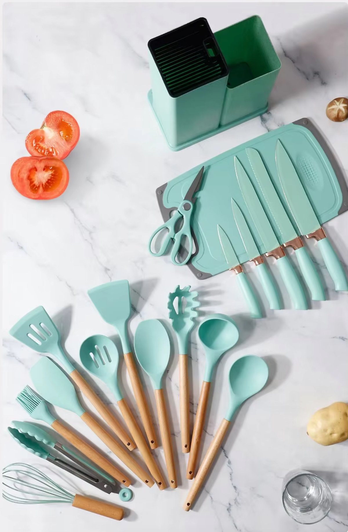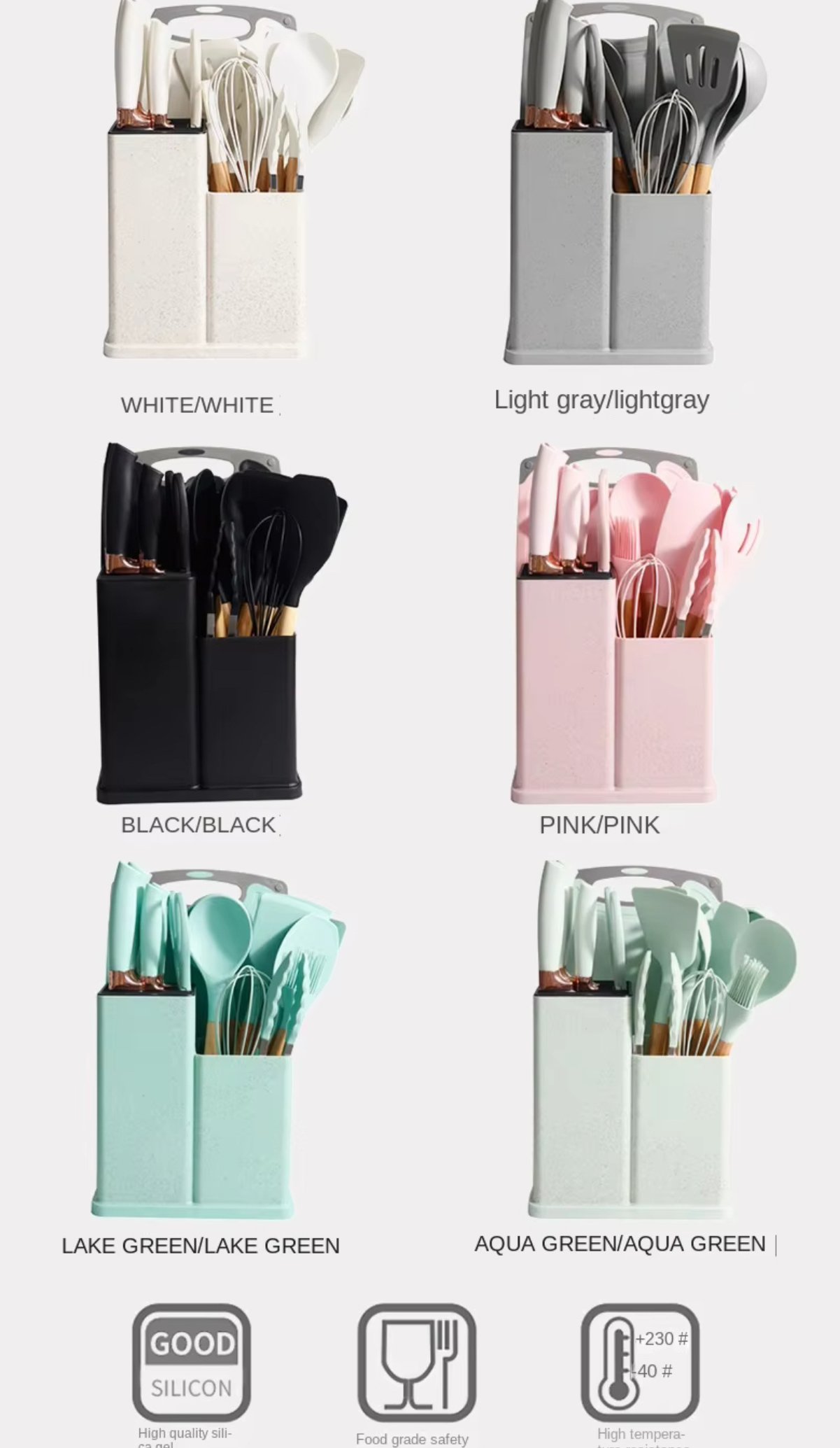 Juego de utensilios de cocina de silicona antiadherente de 19pcs