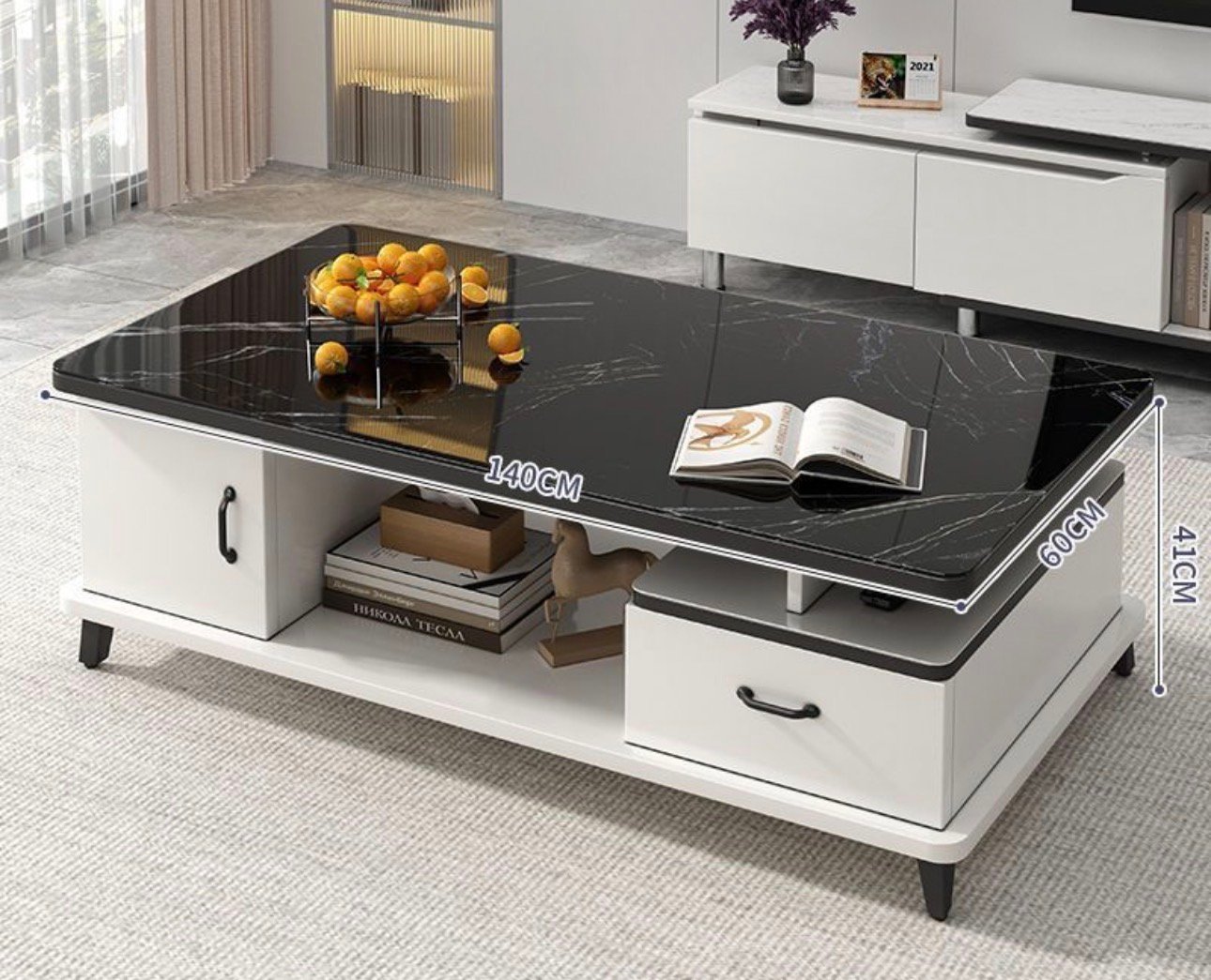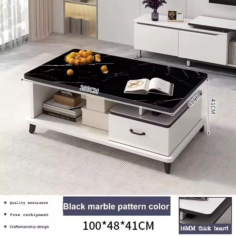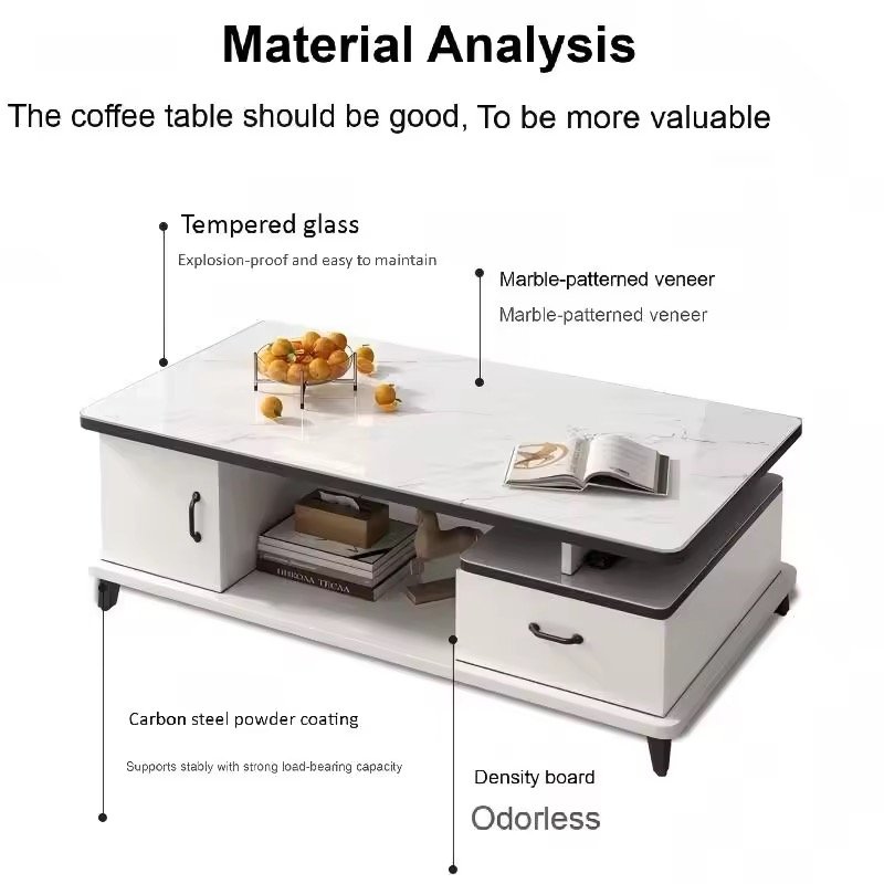 • Mesa de centro moderna y multifuncional para sala de estar con tablero de vidrio templado de 4 mm de espesor