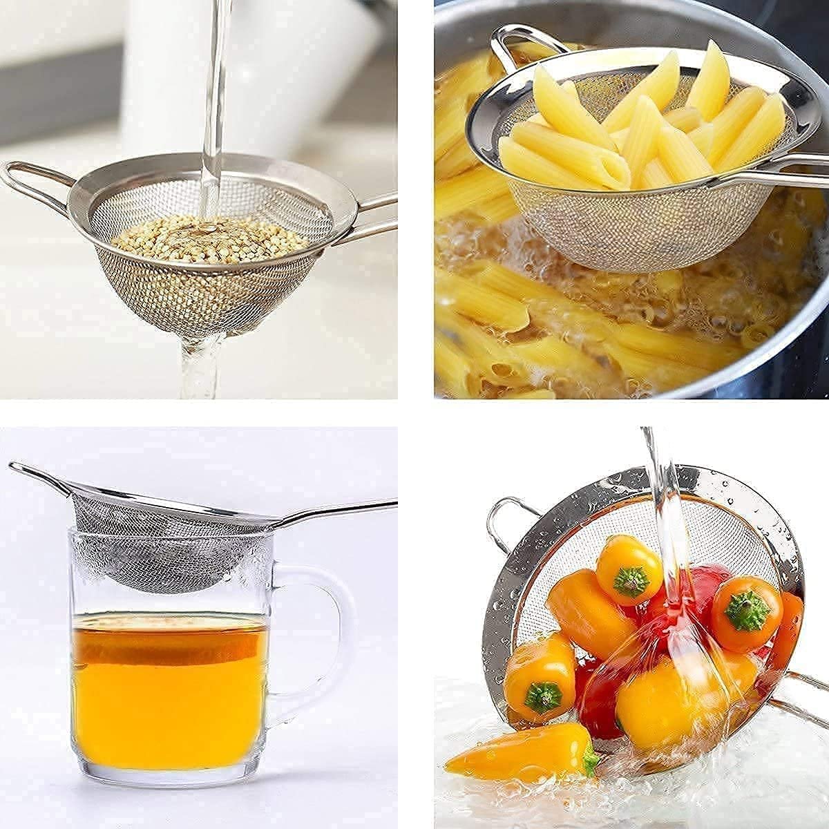 Entrega estimada: 31. marzo - 3. abril- Pack de 3 Coladores de Acero Inoxidable/Coladores de Cocina/Coladores de Malla Fina de Acero/Juego de Coladores Redondos Microperforados de Acero Inoxidable 12 cm y 10 cm y 8 cm Pack de 3