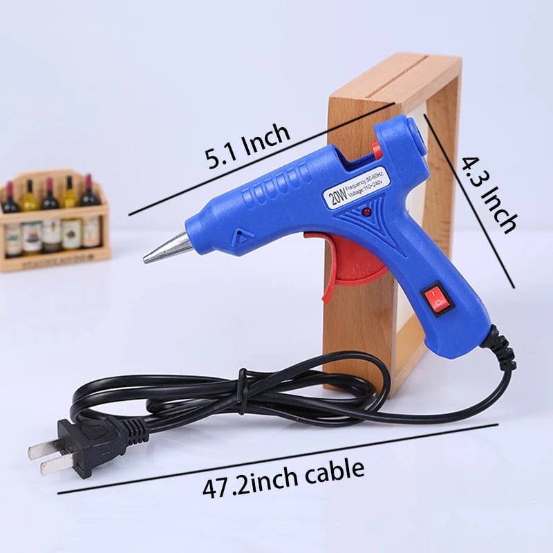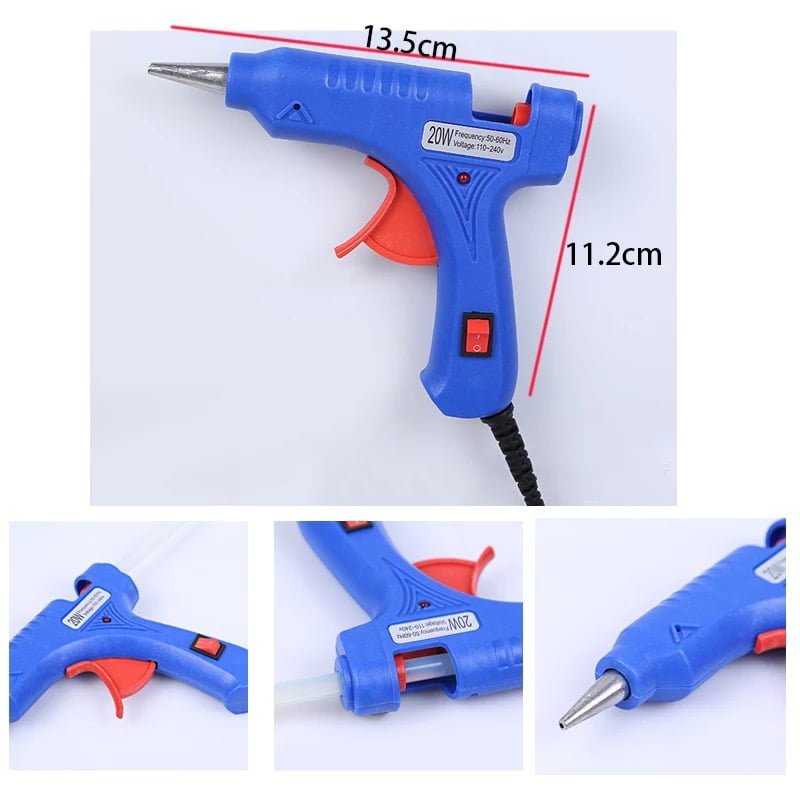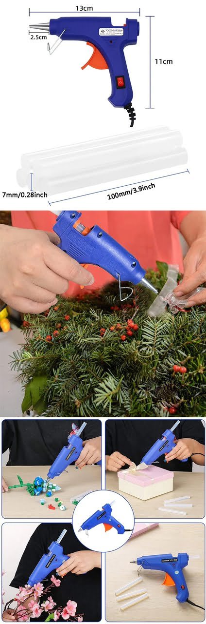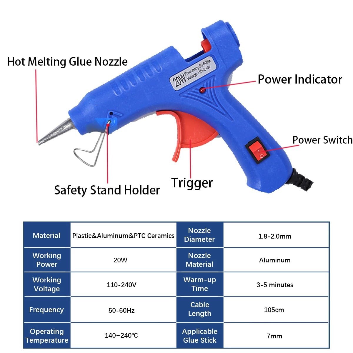 - Pistola de pegamento de fusión en caliente de 20W con barra de pegamento de 7mm,