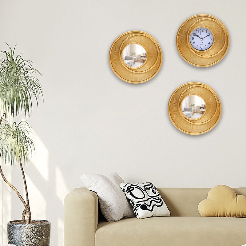 - Es hora de añadir algo de decoración a tu hogar. Este conjunto de dos cuadros de arte de pared enmarcados y un reloj de pared es adecuado para habitaciones de cualquier tamaño, tanto en interiores como en exteriores a la sombra. Perfecto para los amantes de la época, el elegante diseño del patrón circular superpuesto es muy atractivo. Reloj de pared moderno y elegante, fácil de ver a distancia. Ideal para cualquier habitación del hogar, la oficina o el aula. El marco clásico complementará la decoración de cualquier habitación, como la cocina, la sala de estar, el dormitorio, la sala familiar, la sala de reuniones o el comedor. El resistente marco de plástico y la lente de cristal facilitan la limpieza y mantienen el polvo alejado de la esfera. El diseño antiguo y clásico hace del reloj de pared una decoración de pared vintage. El reloj vendrá con 1 ranura ancha en la parte posterior para colgarlo fácilmente.