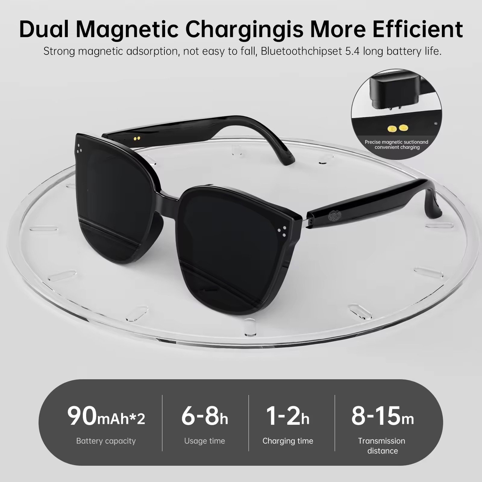 - IT glasses con material Tr90 Pueden utilizarse para diversas funciones, como escuchar música o hacer llamadas, gracias a los altavoces integrados,Integran tecnología avanzada con un diseño de gafas de sol tradicional.